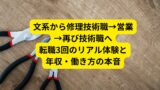 新卒で修理系の技術職に就職しその後いったん営業職へ転職。